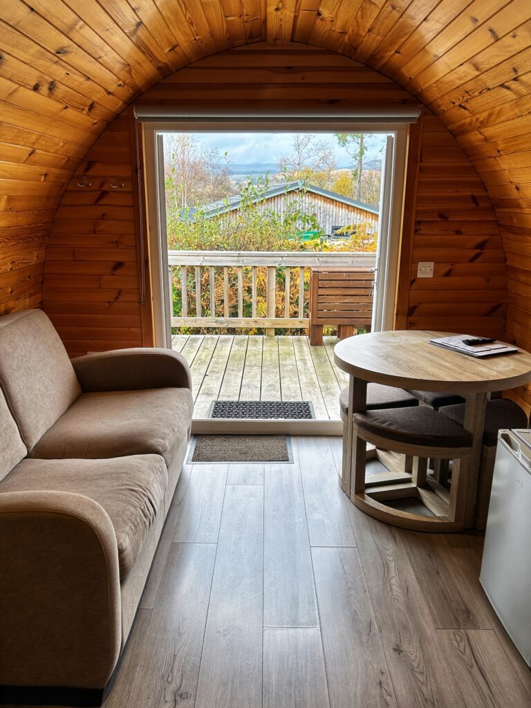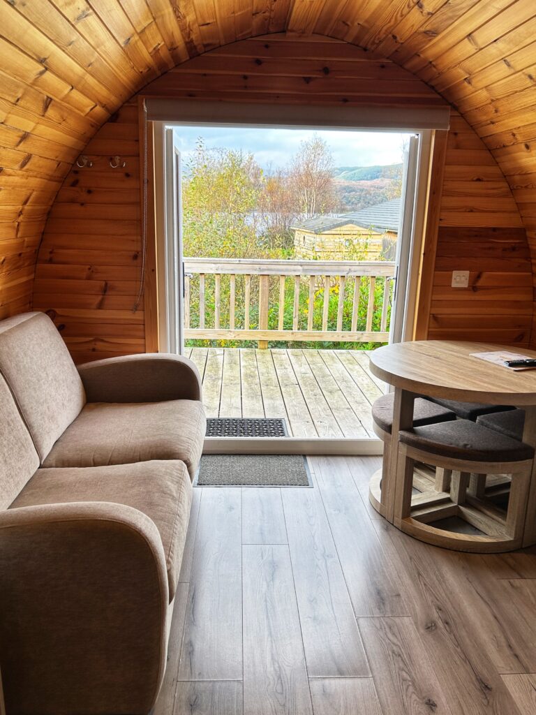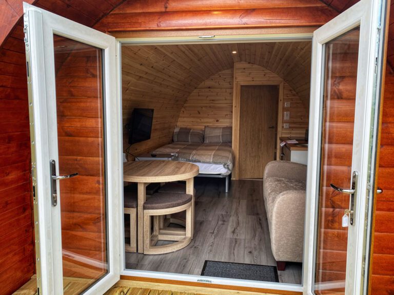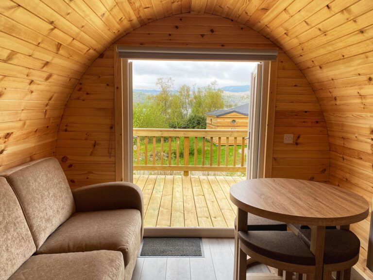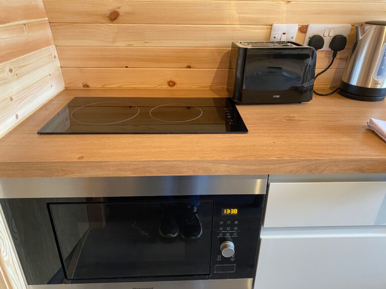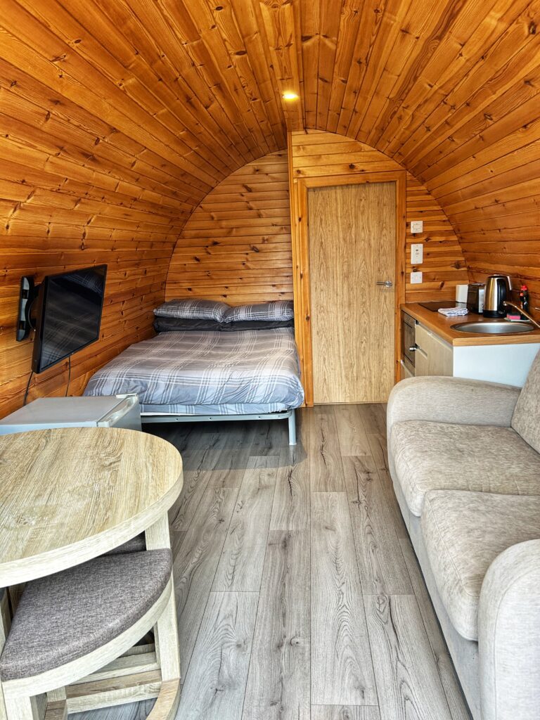 Rowan, Holly, Elm, Juniper, Aspen and Hazel sleep up to two people in their double bed and bed settee. In addition to their own ensuite shower room and seating area, our deluxe pods have a small kitchen area with cooker, microwave and sink to prepare and cook meals.