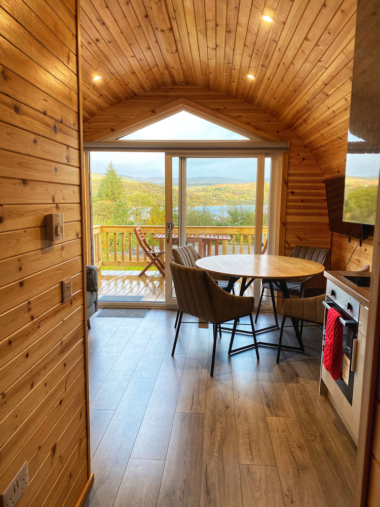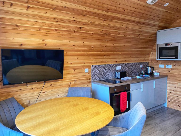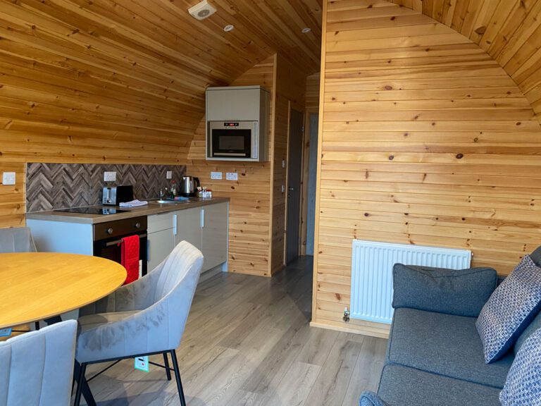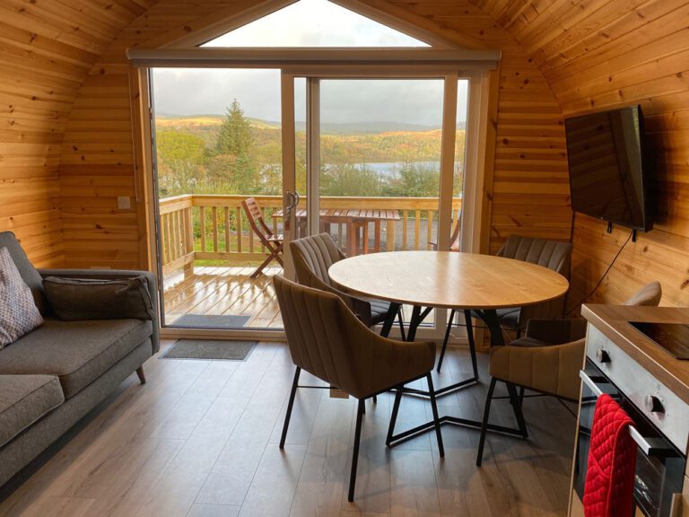 Alder and Hawthorn have a larger kitchen and lounge area with views across the park and across the West Loch towards the Knapdale hills. Their floor to ceiling windows allow the light to flood in and truly make these ‘a room with a view’.